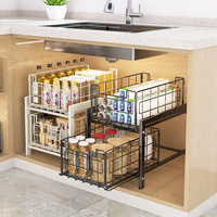 Personalizado Moderno Móvil 2 Niveles Multifuncional Metal Debajo Del Fregadero Organizador De Especias Estante De Almacenamiento De Cocina Para Armarios Deslizantes